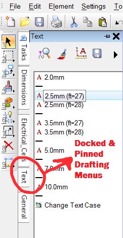 - Dockable and pinnable Drafting windows in MicroStation XM and V8i.